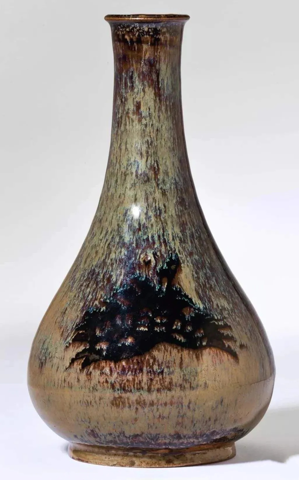 ▲南宋 吉州窑玳瑁釉剪纸贴双凤纹长颈瓶,2016年纽约佳士得,成交价折合人民币约726万元(原日本重要美术品,于2015年9月4日注销该认定)。