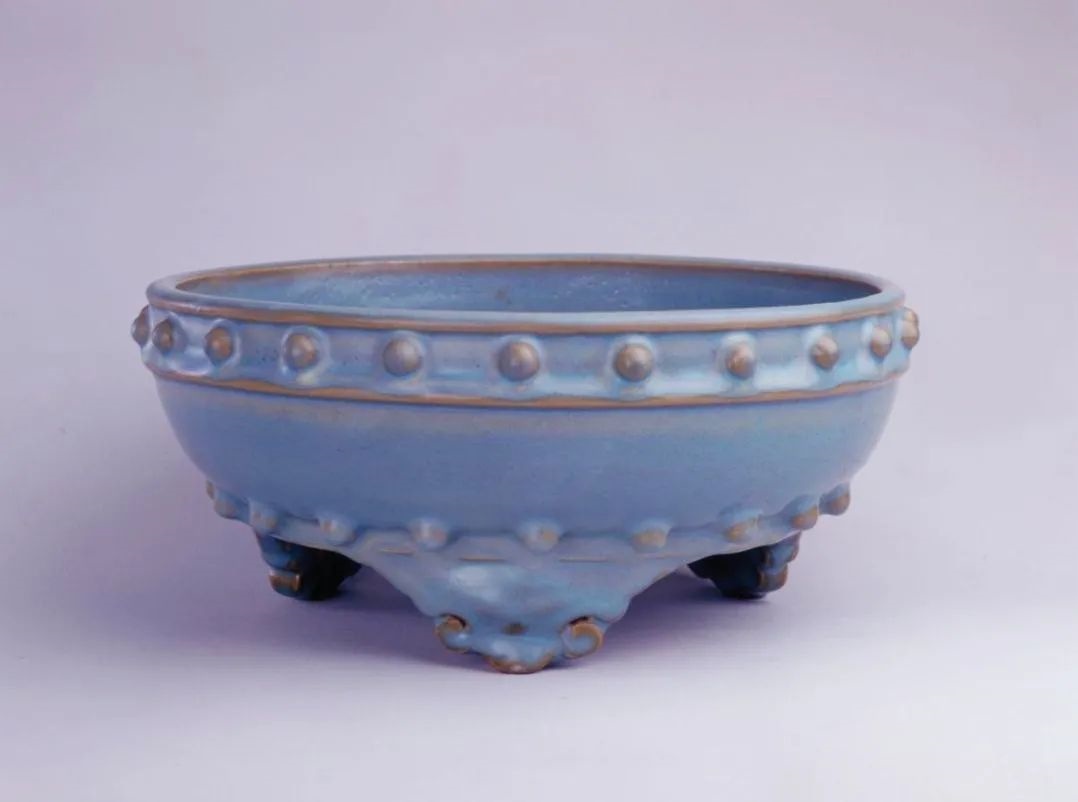 元 钧窑天蓝釉鼓钉三足花盆托/故宫博物院