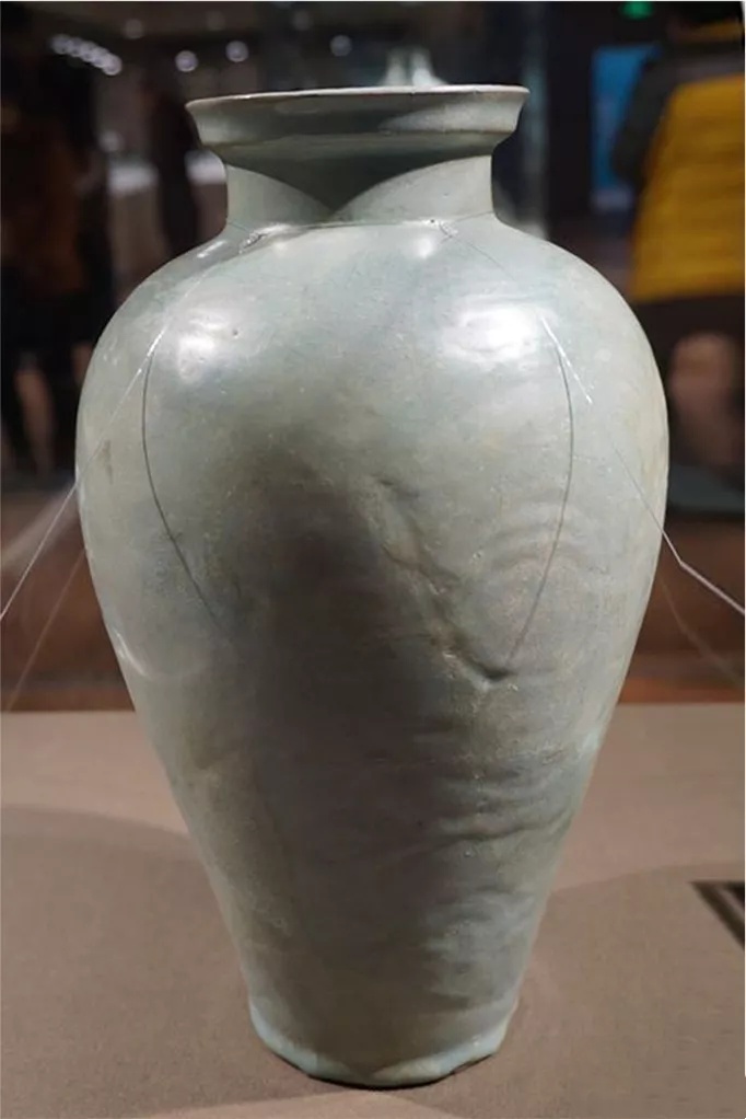 图5-1 北宋汝窑天青釉刻花龙纹盘口瓶,河南省文物考古研究院藏