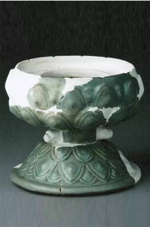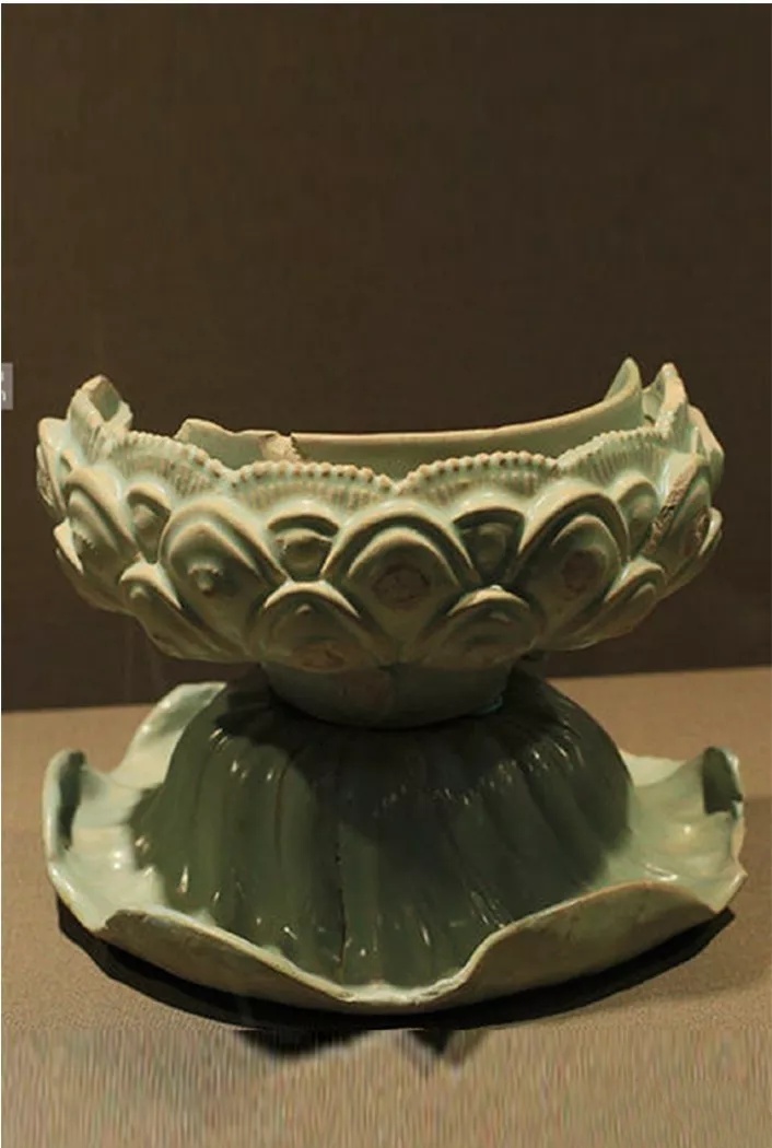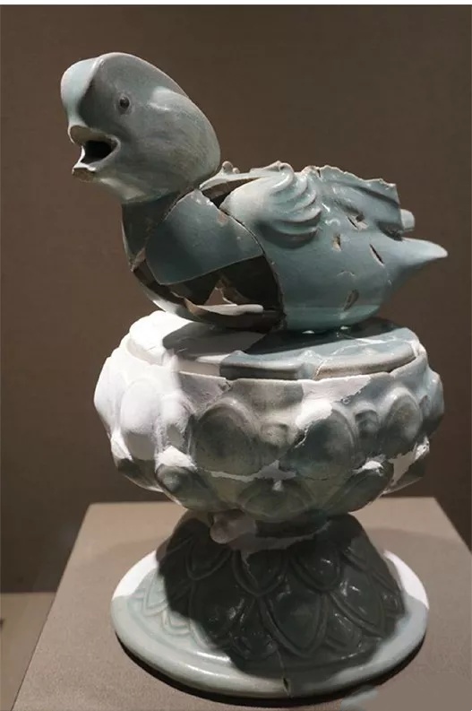 图10-1 北宋汝窑天青釉鸳鸯刻花莲瓣纹熏炉盖,河南省文物考古研究院藏