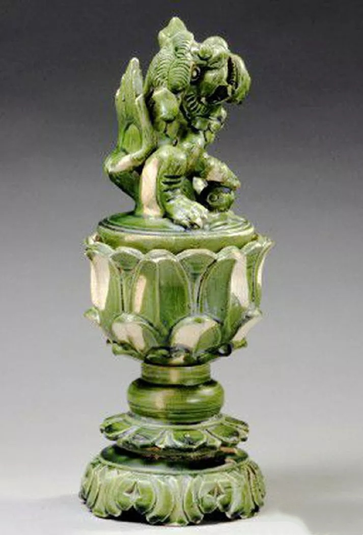 图8-3 北宋吉州窑绿釉狮盖香熏,安徽宿松北宋元佑二年墓出土