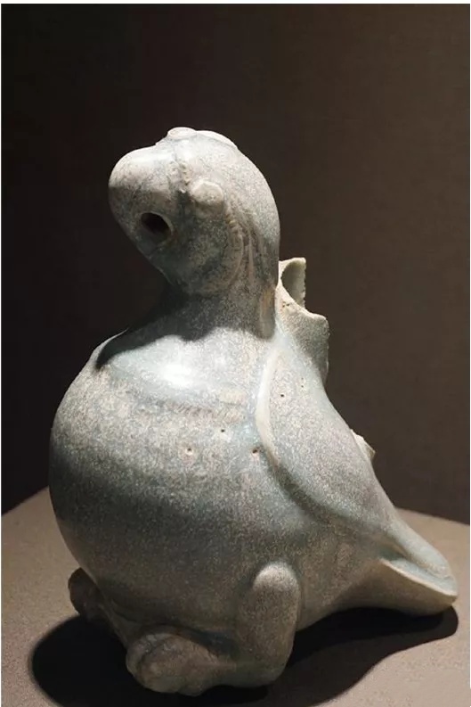 图10-2 北宋汝窑天青釉捏塑鹦鹉熏炉盖,北京故宫博物院藏