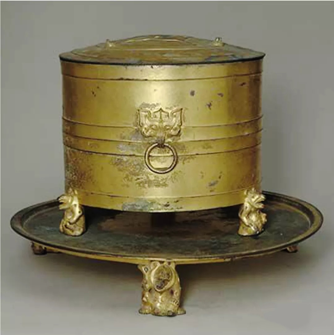 图11-3 汉代鎏金三熊足铜樽,南阳市博物馆藏