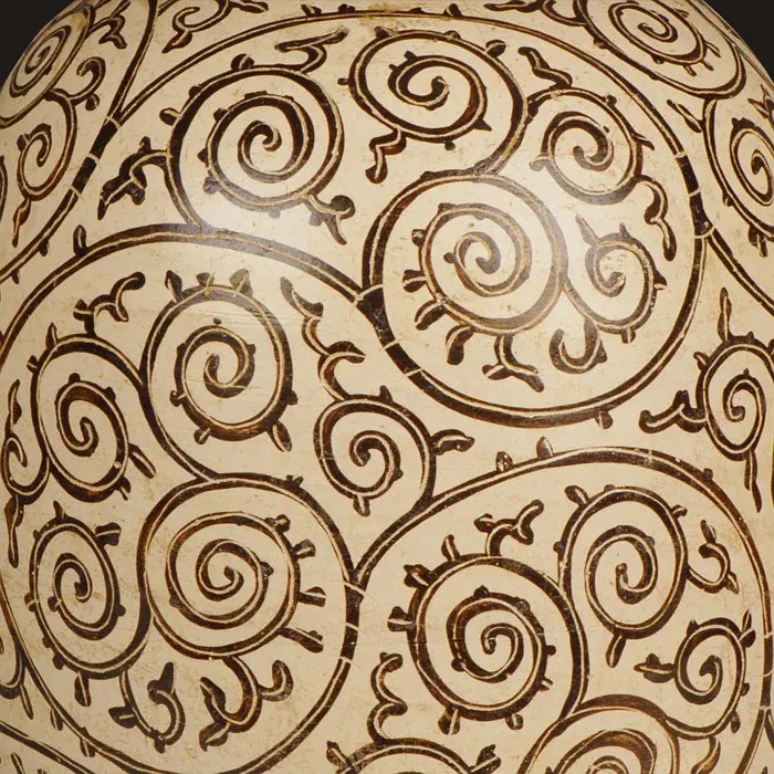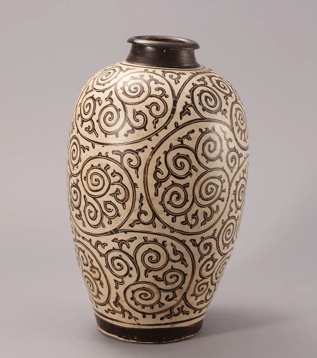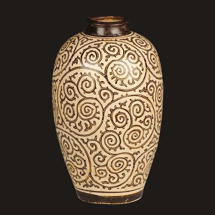 名称:宋 吉州窑褐彩卷草纹瓷瓶 尺寸:高35.2,口径8.3,底径12.3(单位:厘)