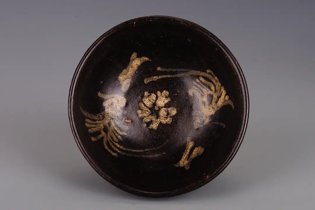 △宋吉州窑黑釉双凤纹碗 吉安市博物馆藏
