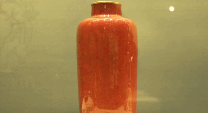 △ 郎窑红釉琵琶尊,具有很明显的脱口垂足特征。故宫博物院藏。