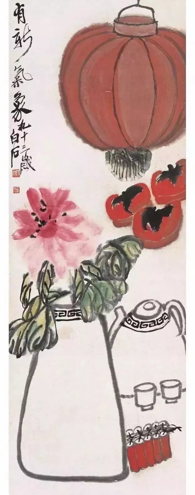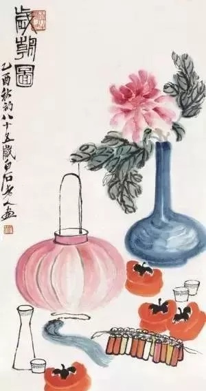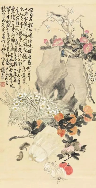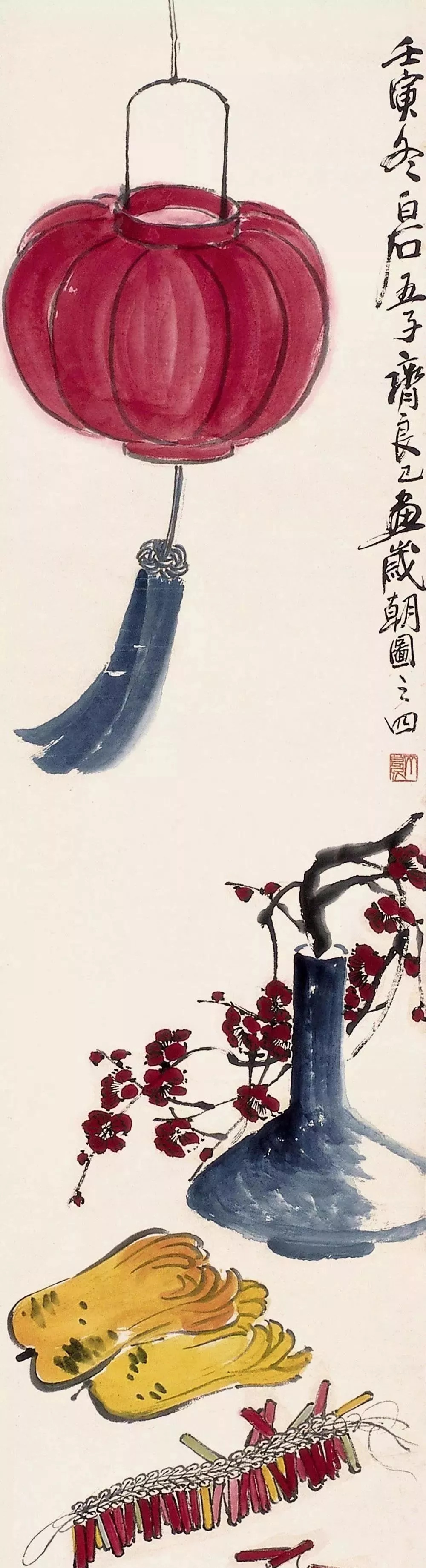 ▲[清代]劉壽萱《歲朝圖》,絹本設色,105×58cm。私人藏品。