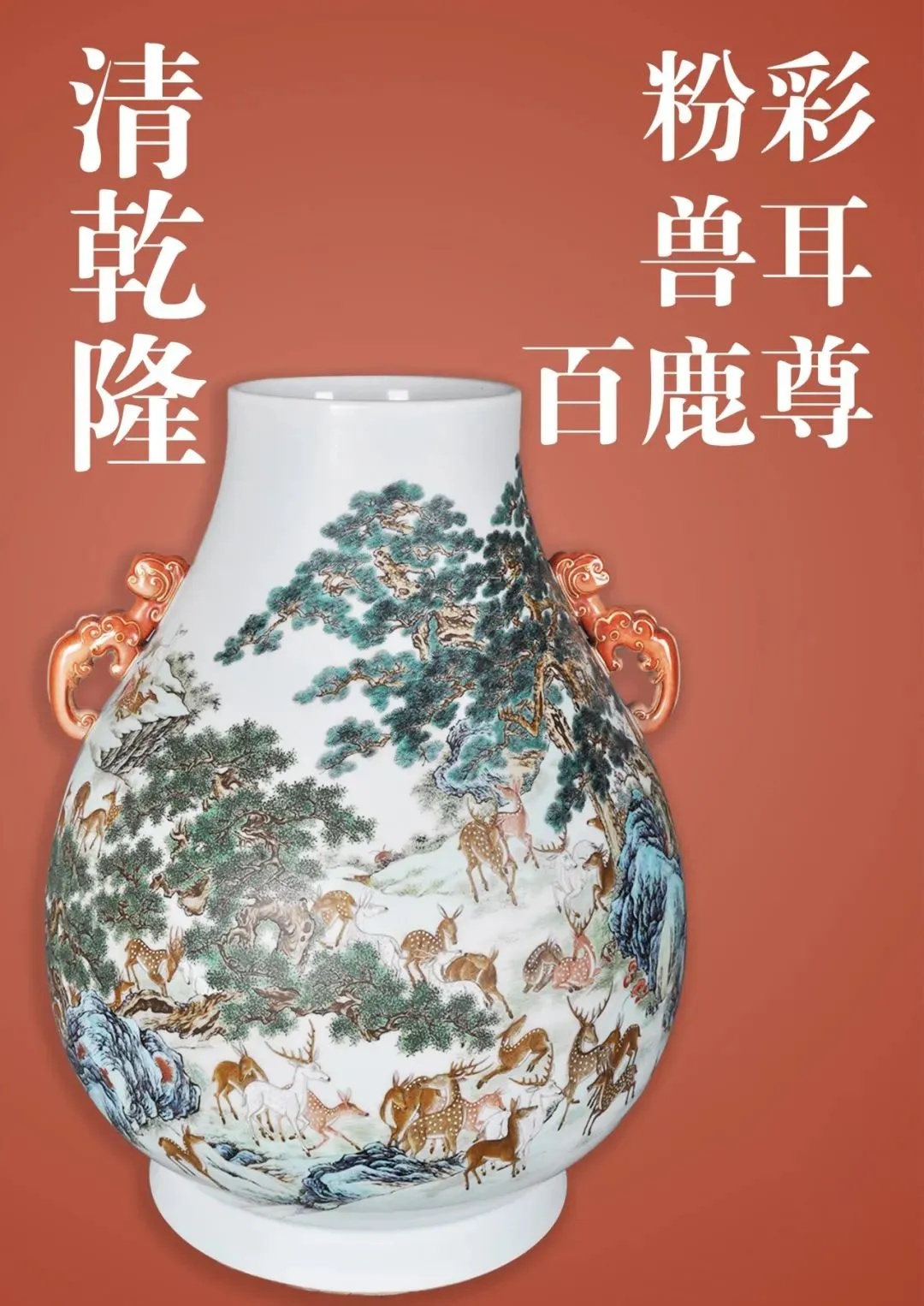 清乾隆粉彩兽耳百鹿尊