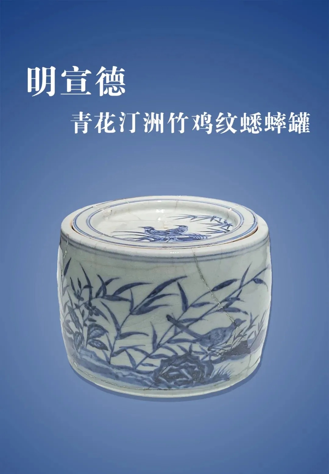明宣德青花汀洲竹鸡纹蟋蟀罐