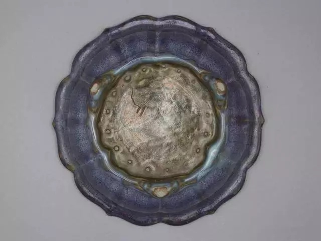 钧窑天蓝釉海棠式盘北宋颜色釉钧窑