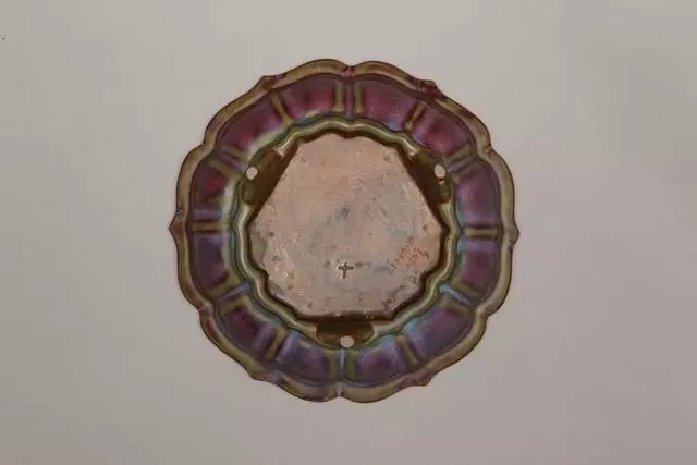 钧窑玫瑰紫釉菱花式三足花盆托 北宋颜色釉钧窑