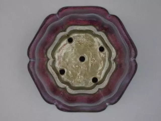 钧窑玫瑰紫釉葵花式三足花盆托 北宋颜色釉钧窑