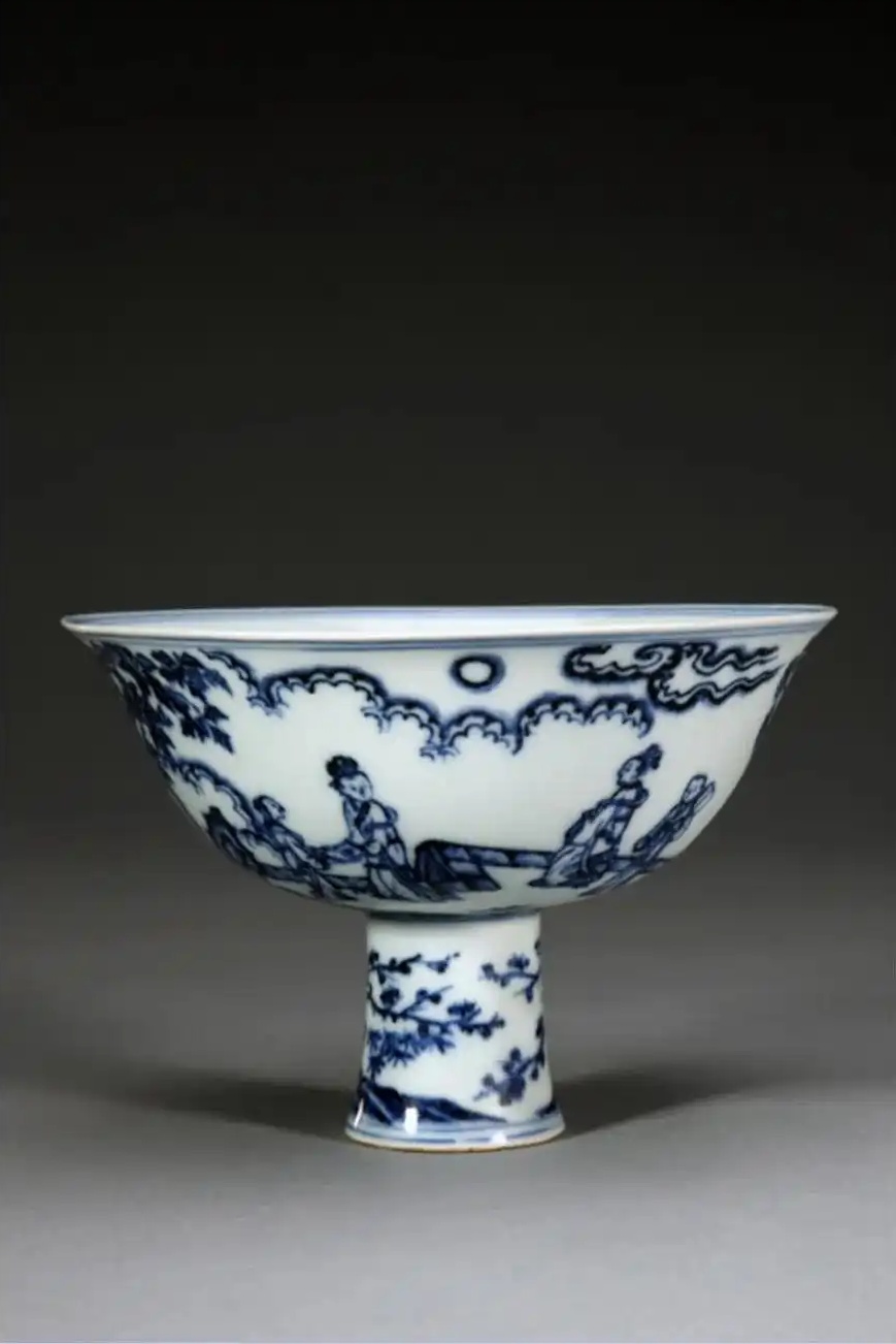 明宣德 青花人物纹高足碗