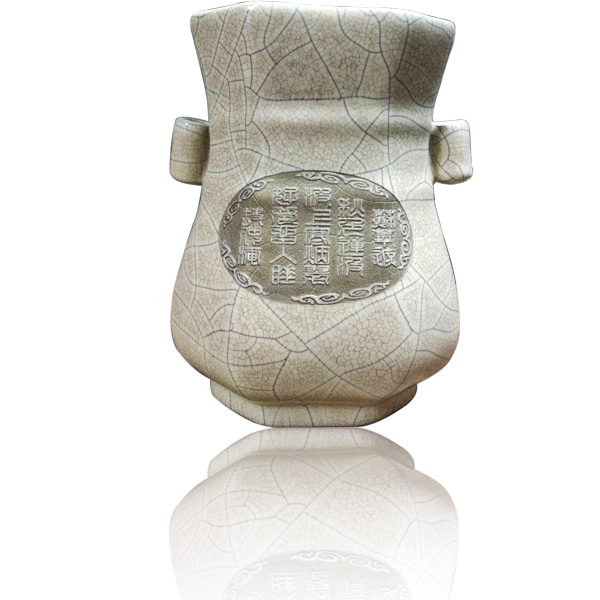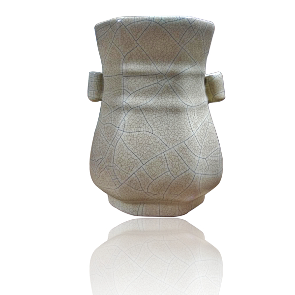 哥窑八方贯耳穿带扁瓶
