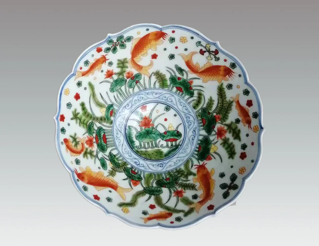 清康熙仿明嘉靖斗彩莲花鲤鱼碗:温润如玉