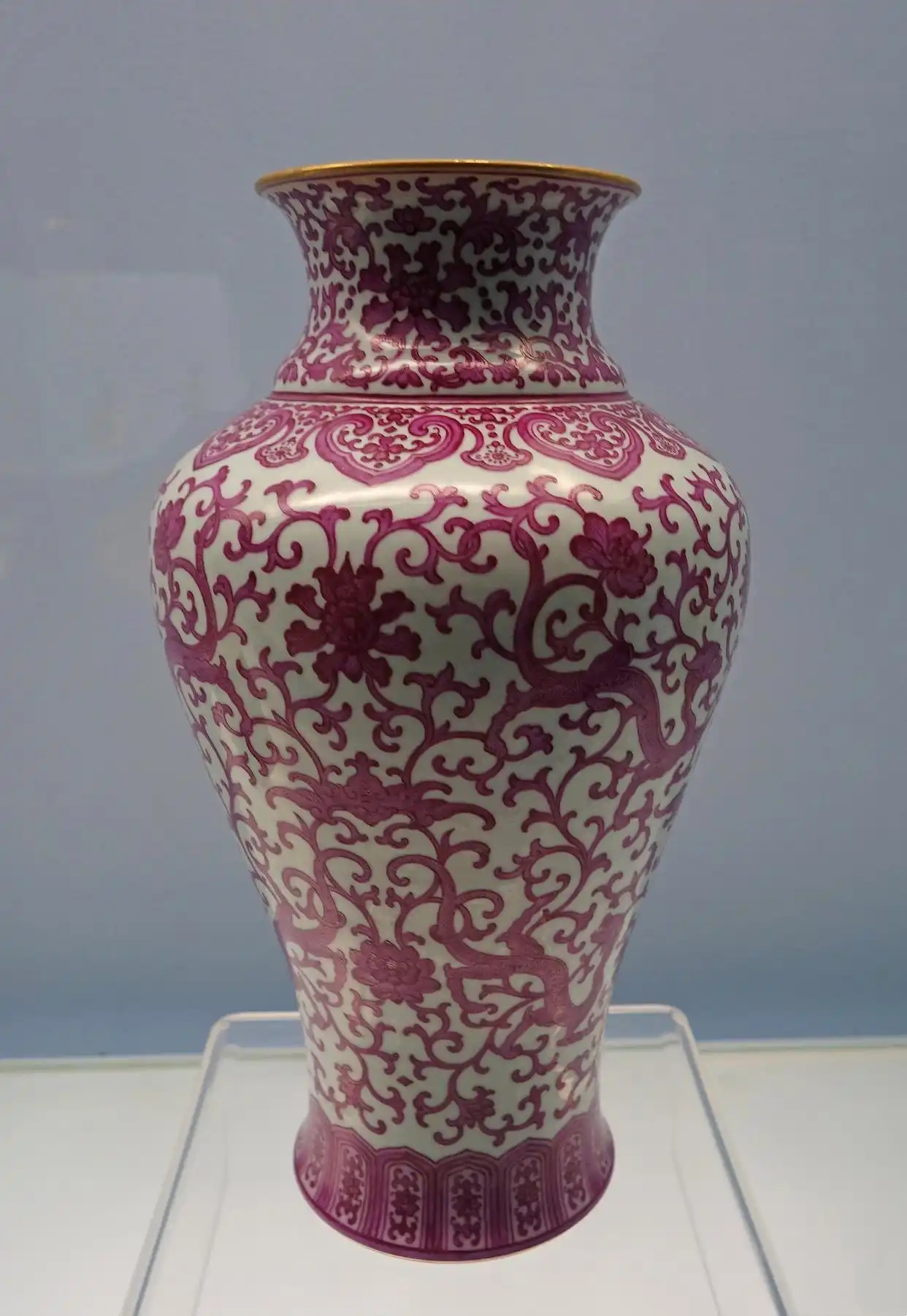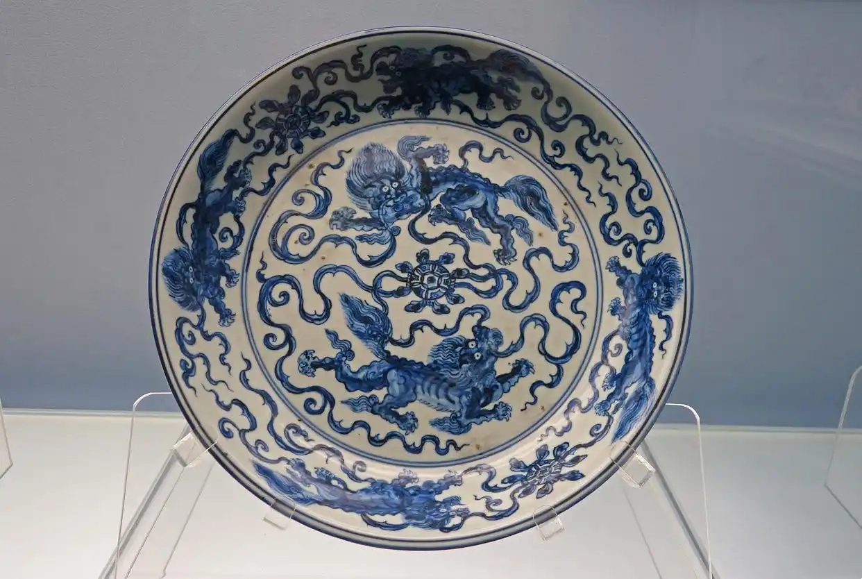 2. 釉色:明代瓷器十分注重釉的质感和颜色,并建立了各种独特的釉色体系。如青花釉色,在元代中的靛蓝色逐渐升华到了明代的纯蓝色,随后发展出不同的色调变化,直至清代的乳白色釉色。釉色明快、绚丽堂皇,通过观察器物的釉色色泽,可以辅助判断器物的年代和制造工艺。