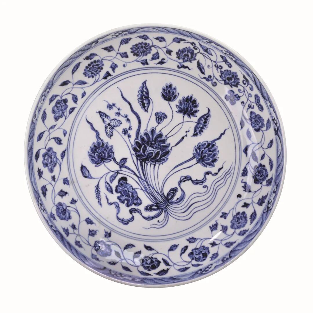 明永乐 青花一束莲纹盘