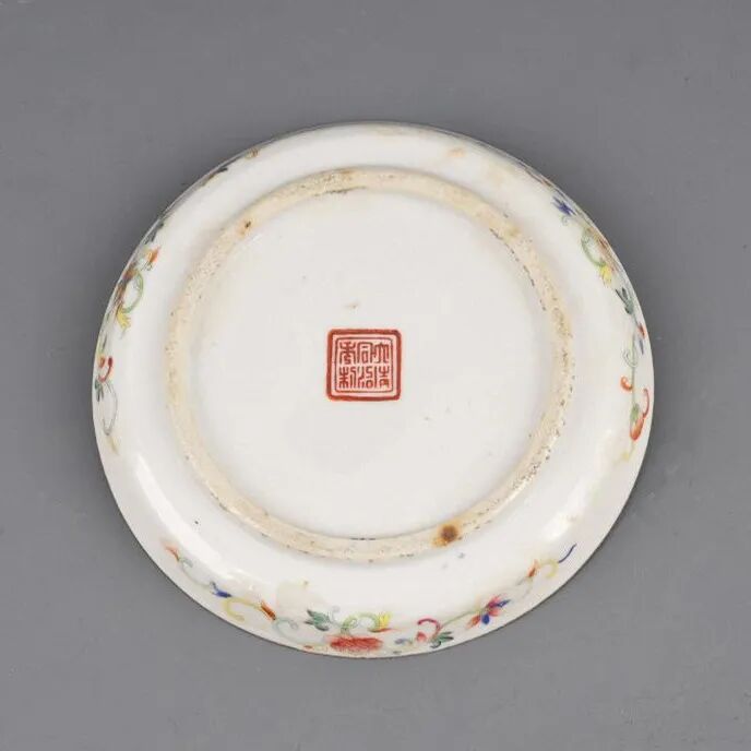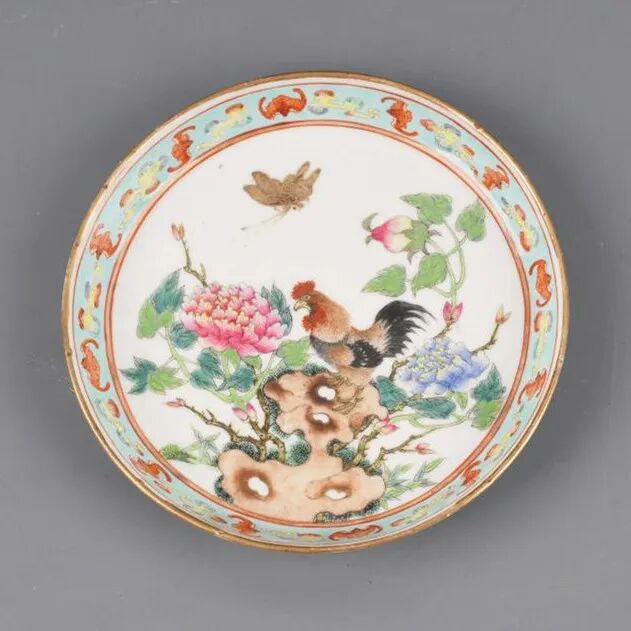清 同治“大清同治年制”款粉彩雄鸡牡丹纹盘