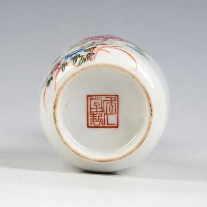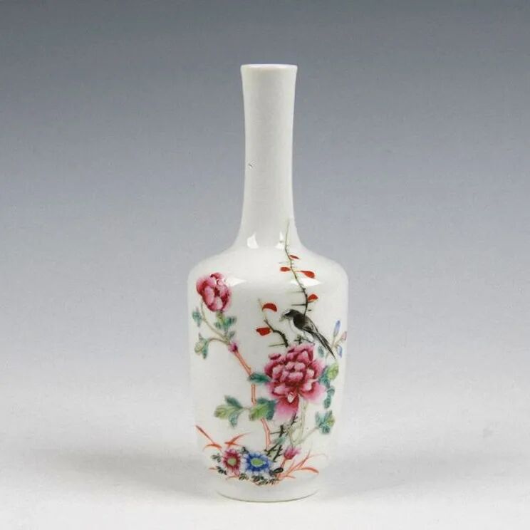 近代 “居仁堂制”款五彩牡丹纹细颈瓶