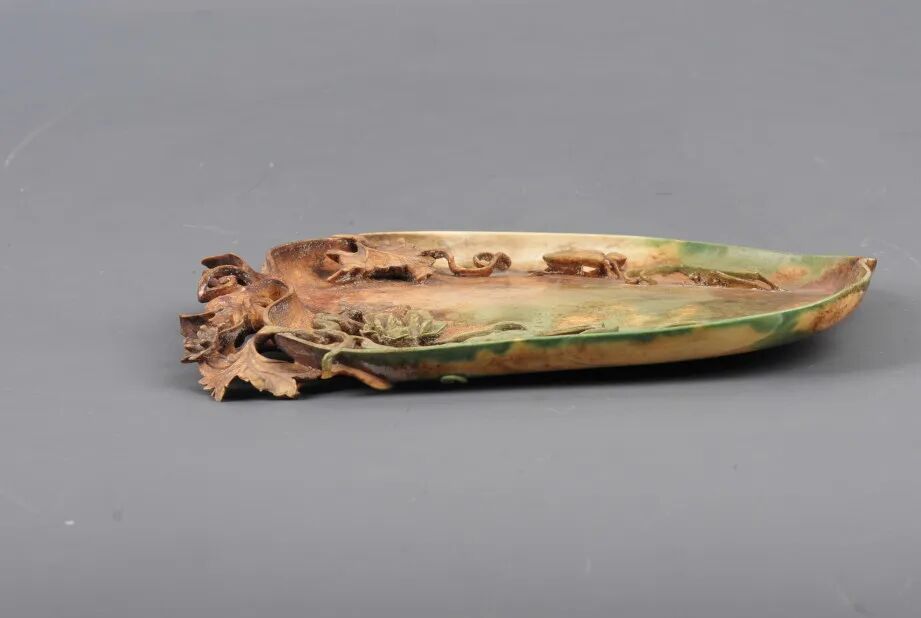 清牙雕染色北瓜形盘