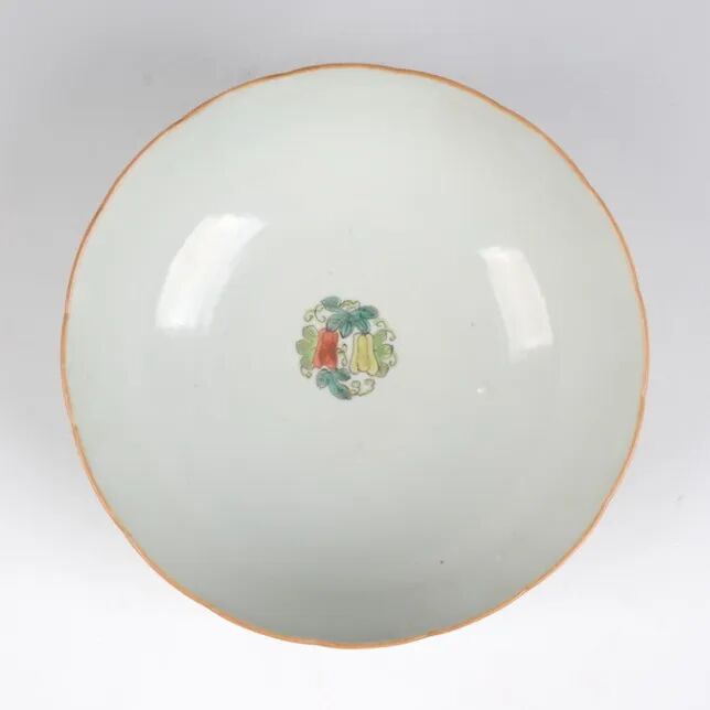 清同治五彩瓜蝶纹盘