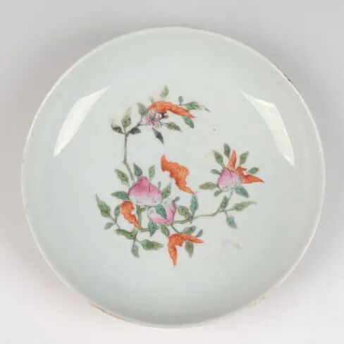 桃纹常用于瓷器、玉器、金银器、织锦等的装饰,出现在工艺品上的时间不晚于宋代,明清时期最为流行。桃纹单独使用时多为红润、硕大的桃子形象,有时配有桃叶或桃枝作为辅助装饰。与其他吉祥纹样搭配时,常与“寿”字纹、蝙蝠、仙鹤、昆虫、瓜果等组合。以桃为造型的器具也十分常见。