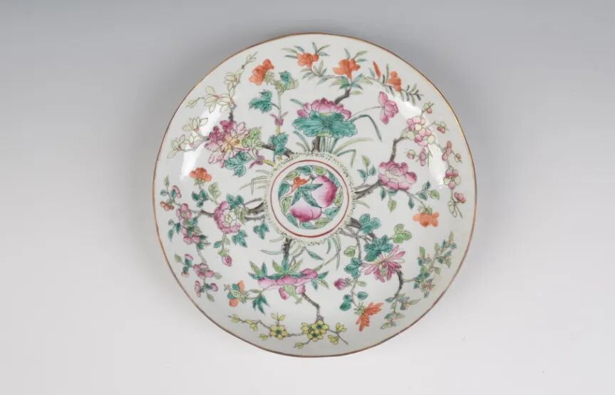 清同治粉彩四季花纹盘
