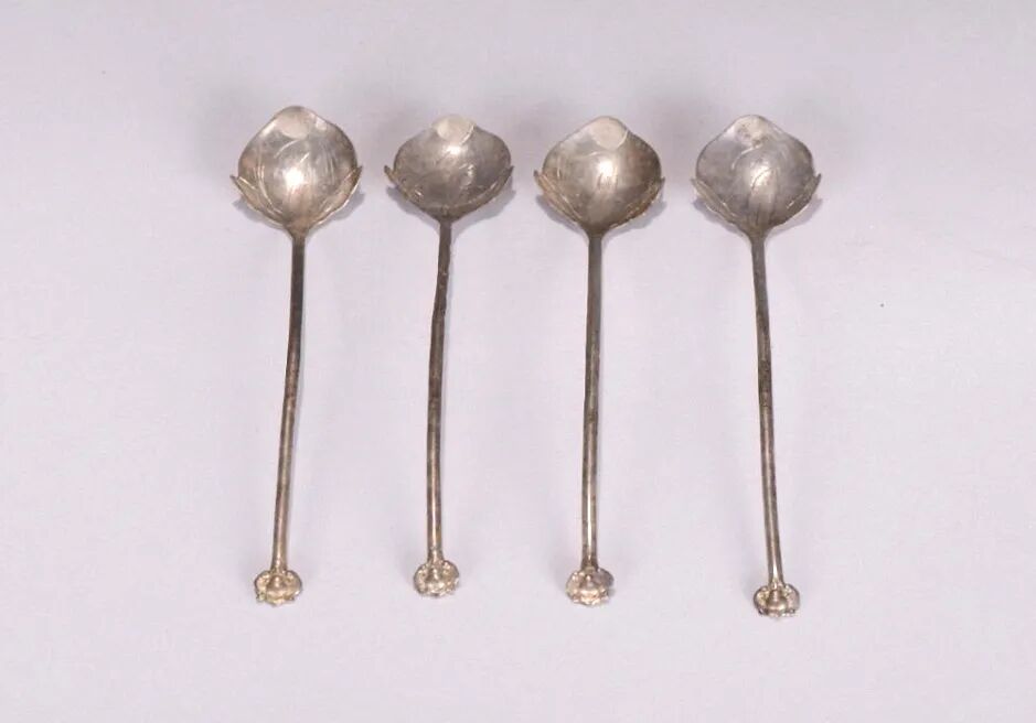 近代桃形刻花银匙