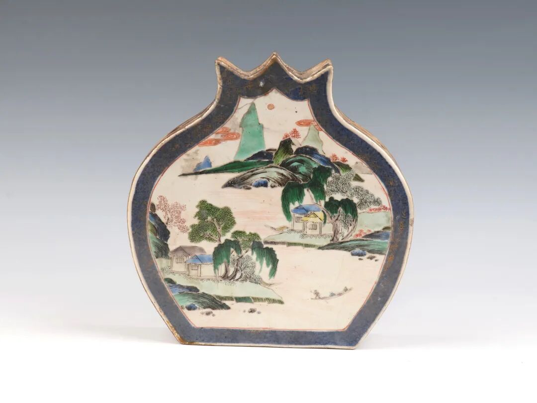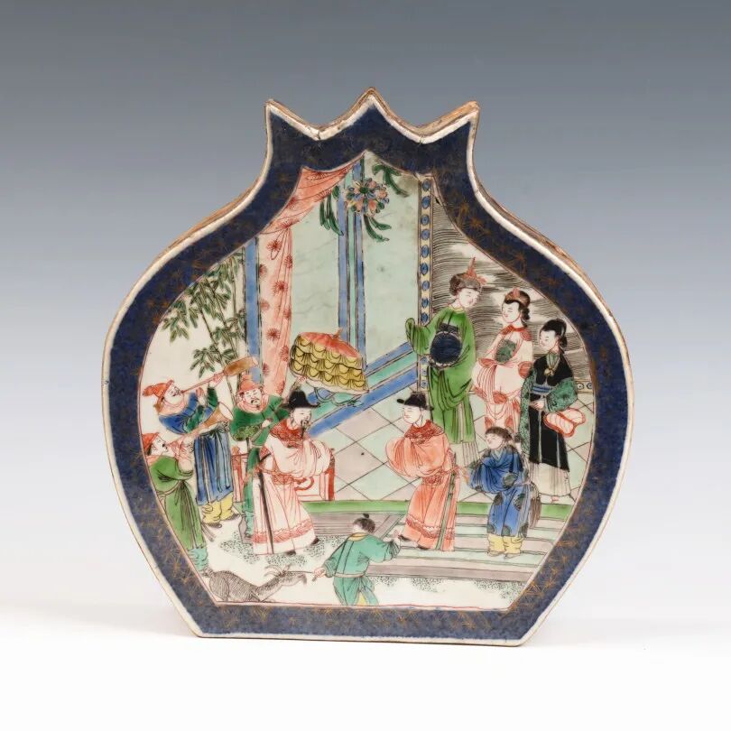 清康熙五彩人物石榴形插板