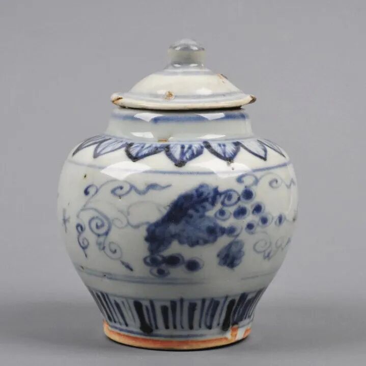 明青花葡萄纹盖罐