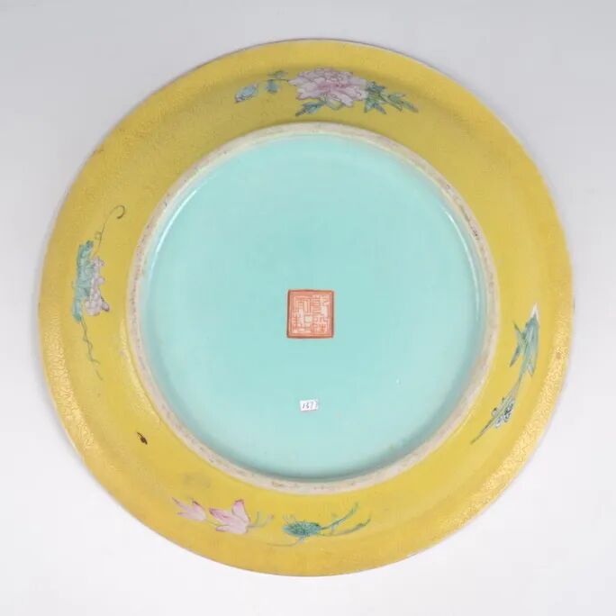 清黄地粉彩花果纹盘