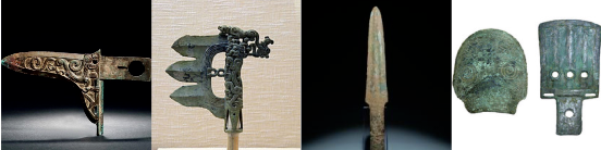 冷兵器时代,长兵、短兵、远射是兵器的三大主要类型。考古出土实物中,青铜兵器有剑、戈、矛、铍、戟、钺、镞、刀、弩、盔。
