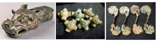 车马器有軎、辖、毂饰、轴饰、舆饰、辕首饰、衡饰、銮、轭、踵饰、衔、镳、当卢、马冠、铜泡等。