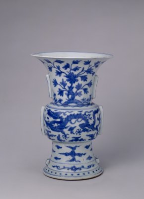 (故宫博物院藏青花龙凤纹出戟花觚)