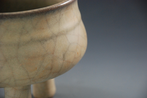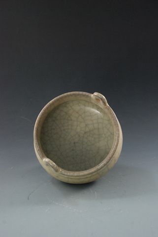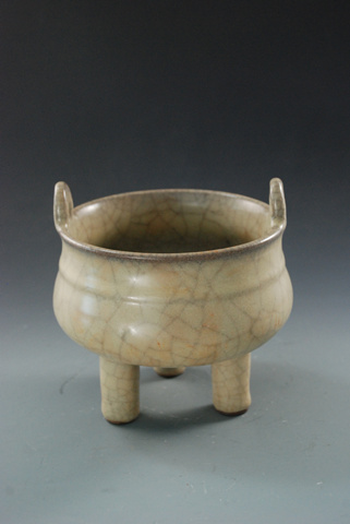(淄博文昌古陶瓷博物馆藏官窑三足双耳弦纹炉)