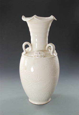 (淄博文昌古陶瓷博物馆藏定窑窝边花口瓶)