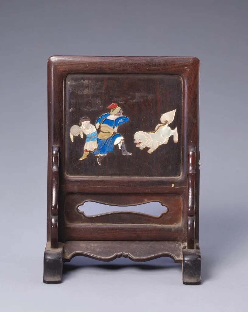 螺钿漆器可以追溯到商代,至清代,螺钿家具的制作达到了高峰。螺钿多以黑漆做底,螺贝的薄片嵌在上面形成视觉效果的反差,而螺贝本身能在光线下产生出奇幻、绚丽的艺术效果,应用于屏风时体现出极强的装饰性。