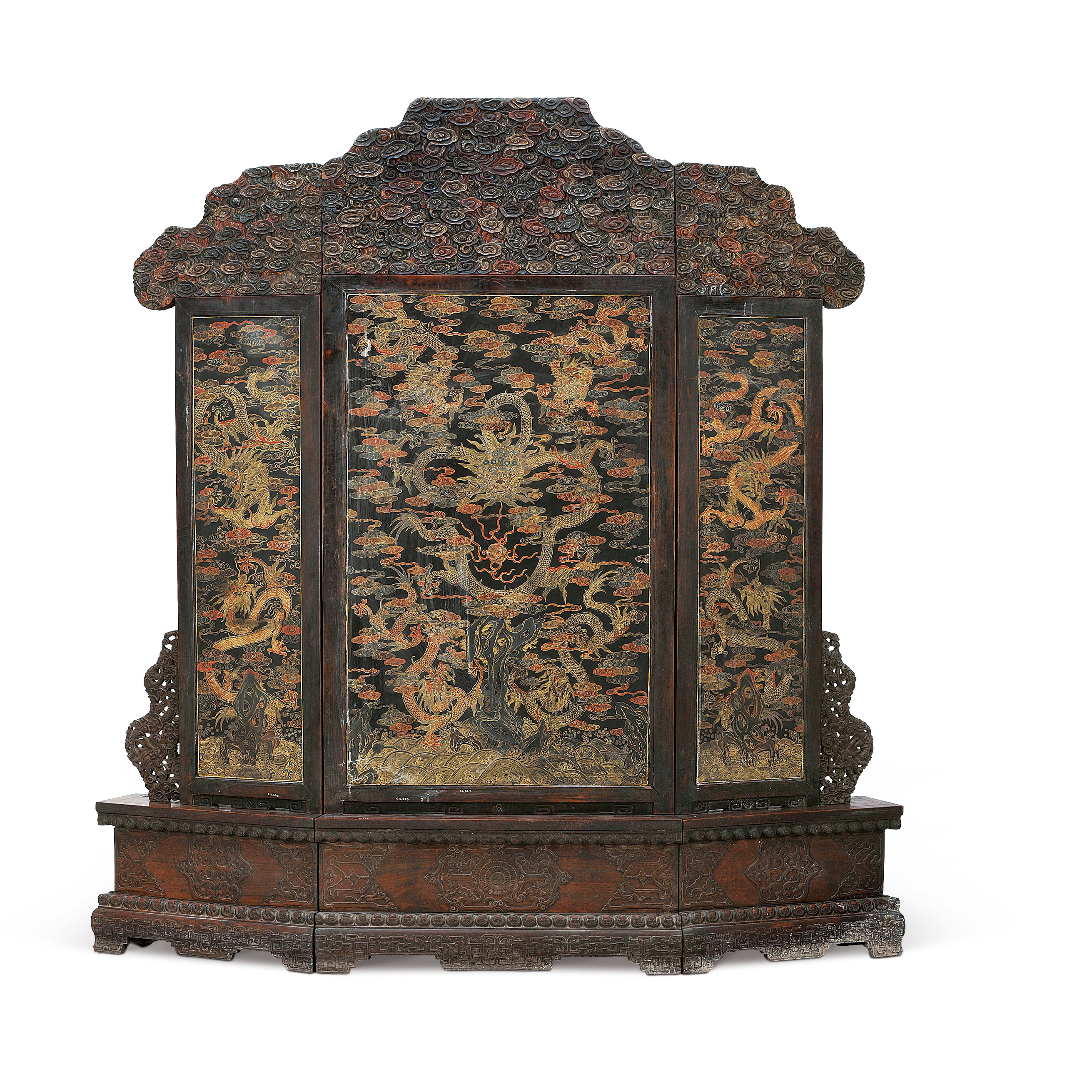 描金彩绘高浮雕海水云龙纹硬木屏风