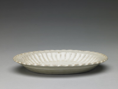 (故宫博物院藏定窑白釉印花博古图菊瓣盘)