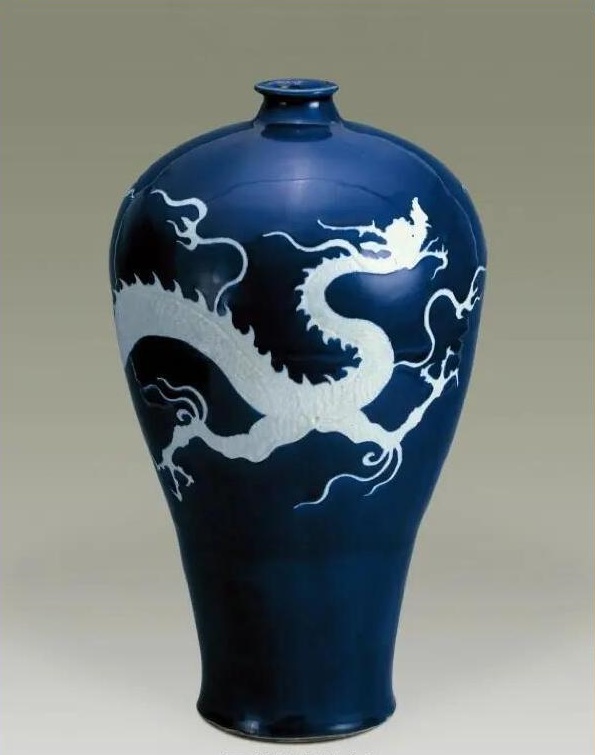扬州博物馆的镇馆之宝——霁蓝釉白龙纹梅瓶。