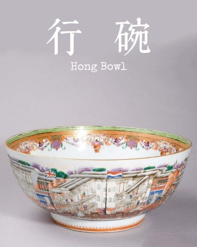 潘趣碗是中国外销瓷的一个主要品类,以其深壁大口的设计而闻名。这种独特的形状不仅便于饮用,还能充分展示精美的绘画图案,适合描绘複杂的场景和生动的故事。例如,专门描绘广州十三行情景的「行碗」,碗身展现了十三行的全景。丹麦、法国、中国(清)、瑞士、英国和荷兰的商行尽收眼底。十三行口岸的船隻汇聚,码头上熙熙攘攘的人群,生动反映了清代各国商人在十三行交易的繁荣景象。