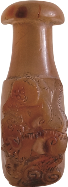 烟嘴,又称烟嘴子,是烟具之一。明人张介宾在《景岳全书》中有云“烟草自古未闻,近自我明万历时,出于闽广之间,自后吴楚地土皆种植之”,明朝万历时期伴随着烟草流入中国,烟具也随之传入。在中国烟草盛行之初,本无烟嘴之说,最初只是在一根中空的木杆前面加个烟锅就作为烟具使用,后来为了更舒服地吸食烟草才出现了烟嘴。现在的文玩市场上多见清代至民国时期的老玛瑙烟嘴,这些雕琢有各种有趣图案的玛瑙烟嘴从过去的生活实用器转变成受藏家欢迎的民俗艺术品。