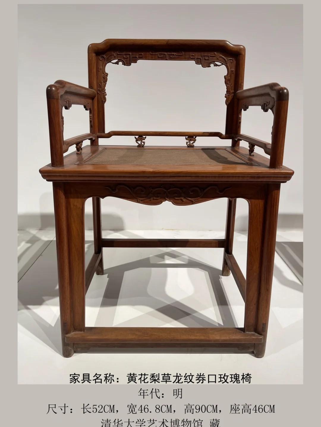 清华大学艺术博物馆里珍藏的一件黄花梨“明式家具”——玫瑰椅。