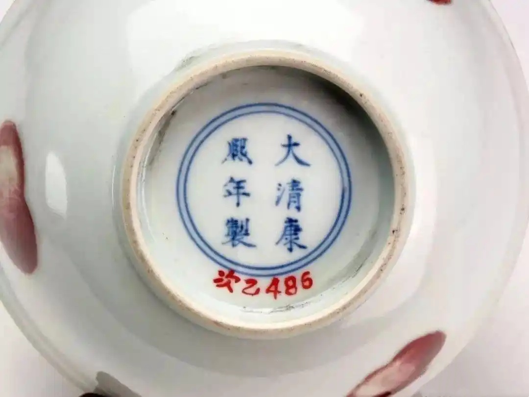 清康熙款釉里红三果碗