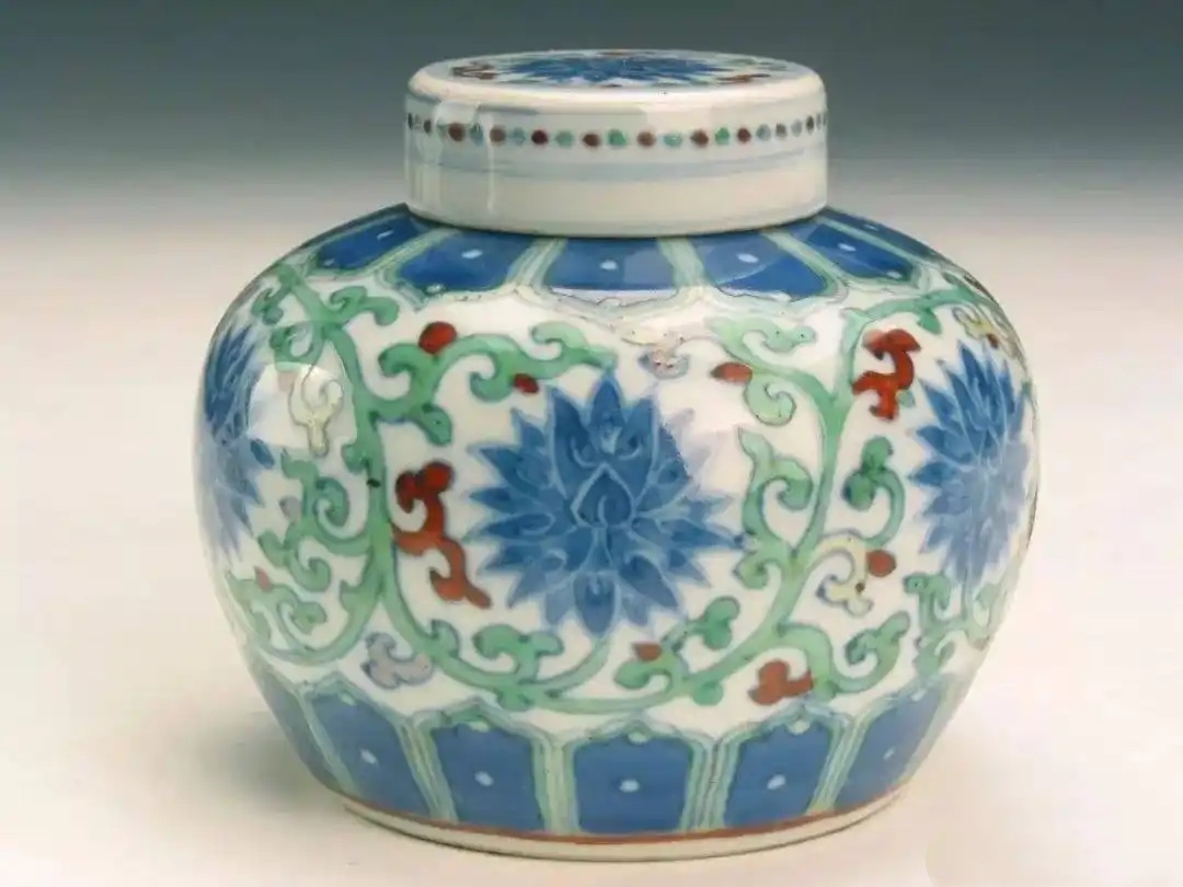 清康熙款斗彩番莲小盖罐