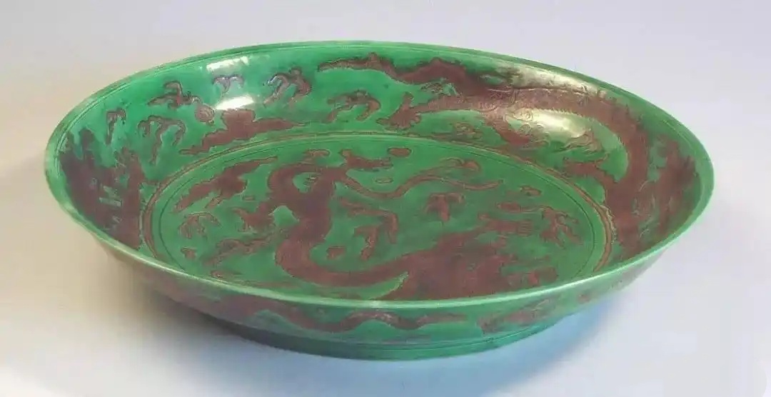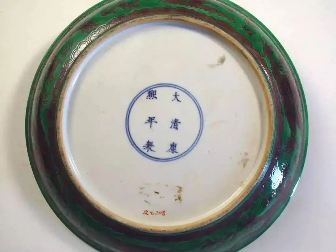 清康熙款绿釉紫龙盘