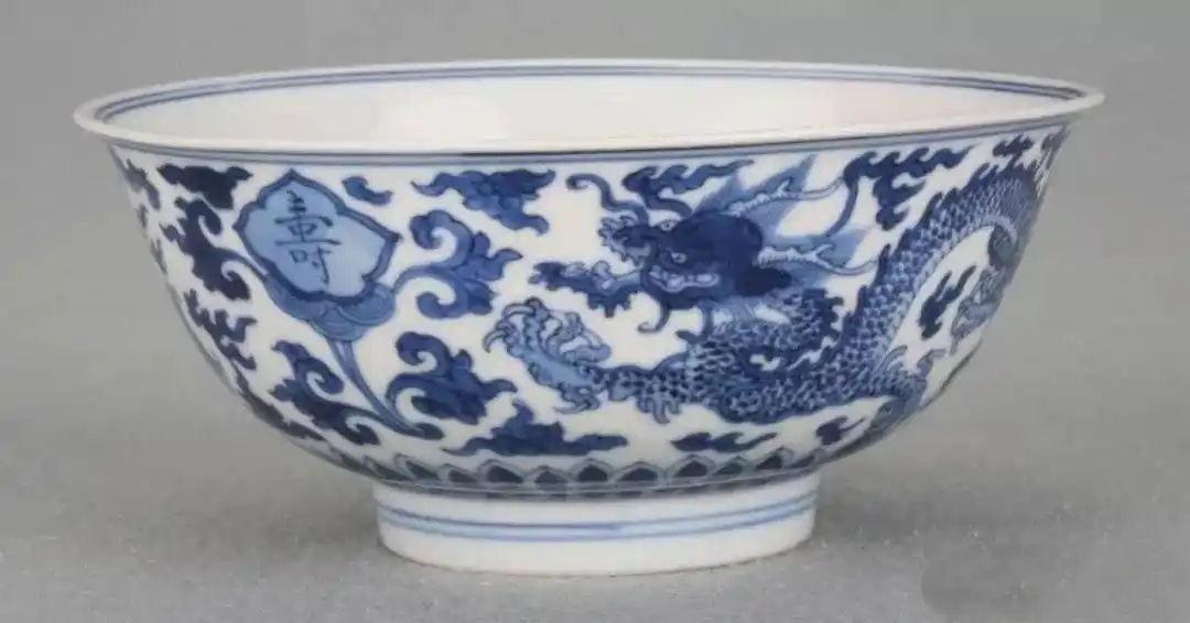 清康熙款青花云龙福寿碗