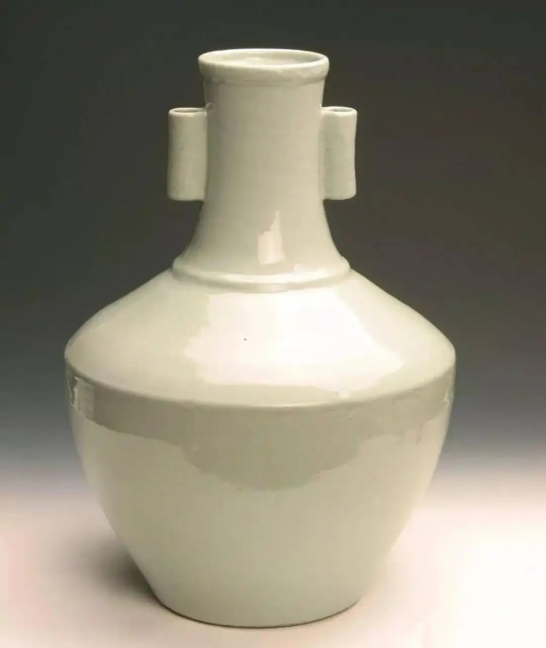 清雍正款粉青釉双马耳长颈瓶