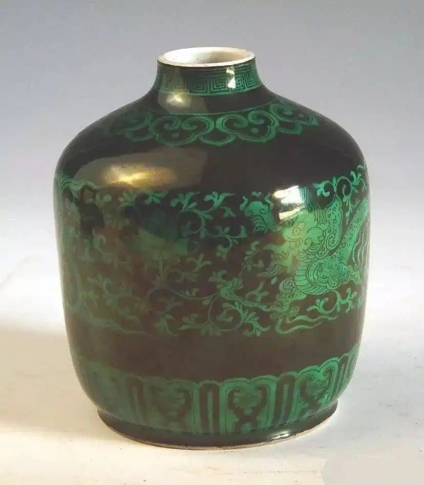 清雍正款黑地绿龙罐