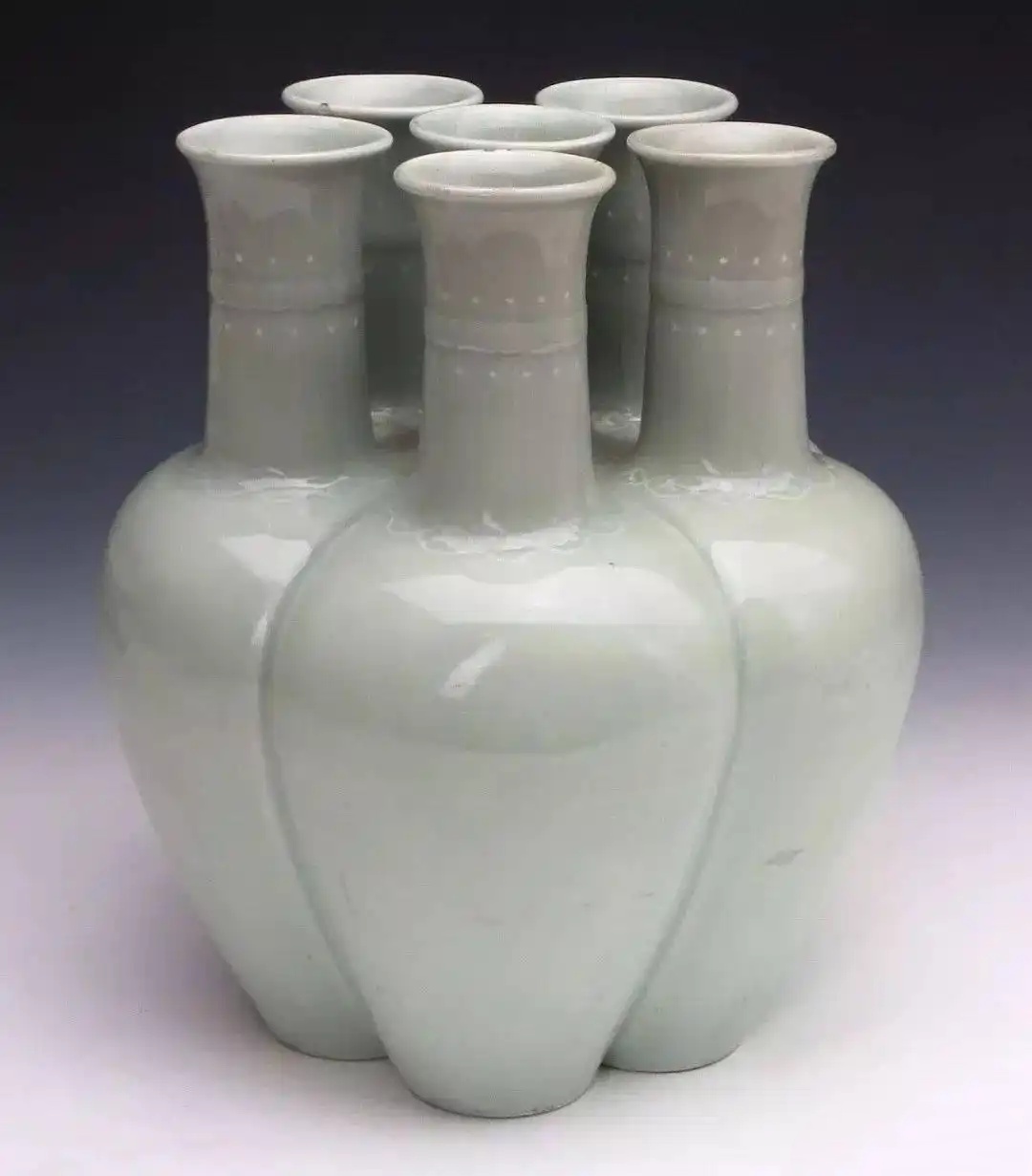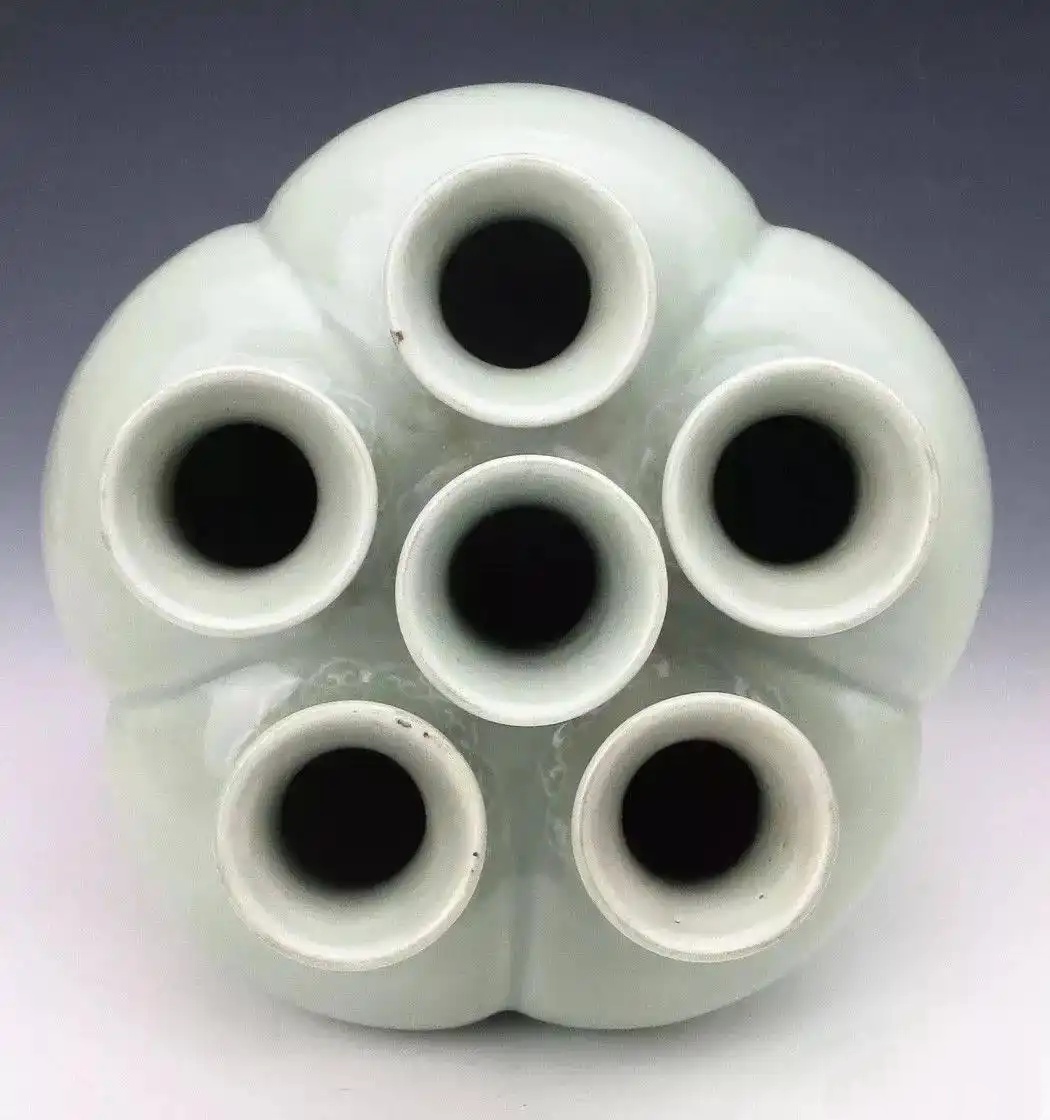 清雍正款冬青釉六孔瓶